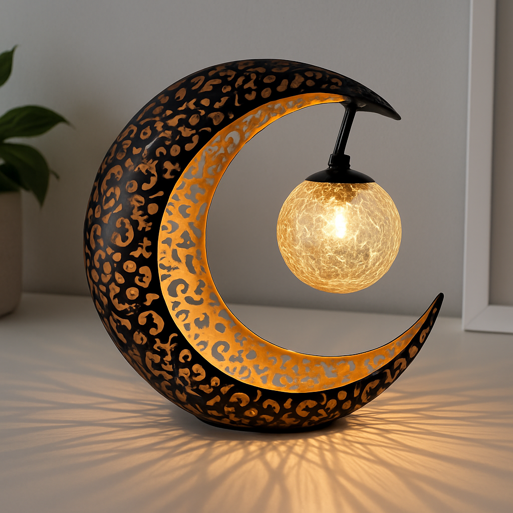 Crea un’atmosfera magica nel tuo giardino, patio o balcone con questa elegante luce solare LED da esterno a forma di luna. Realizzata in ferro resistente con finitura traforata e sfera in vetro crepato, emette una luce calda e decorativa che dona stile e calore a qualsiasi ambiente esterno. Il design Art Dรฉco a mezzaluna la rende ideale anche come decorazione per eventi, feste o per aggiungere un tocco speciale durante le festivitร .