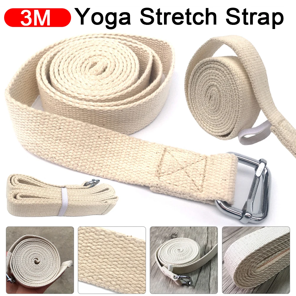 Cinghia Yoga Stretch 3m con D-Ring Regolabile in Cotone per Fitness e Esercizi di Resistenza per Vita e Gambe straps