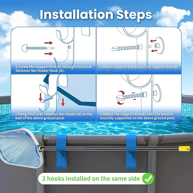 Supporto per rete per skimmer per foglie per piscina a bordo piscina Gancio per palo per piscina fuori terra Accessori per ganci per palo da nuoto telescopico regolabile